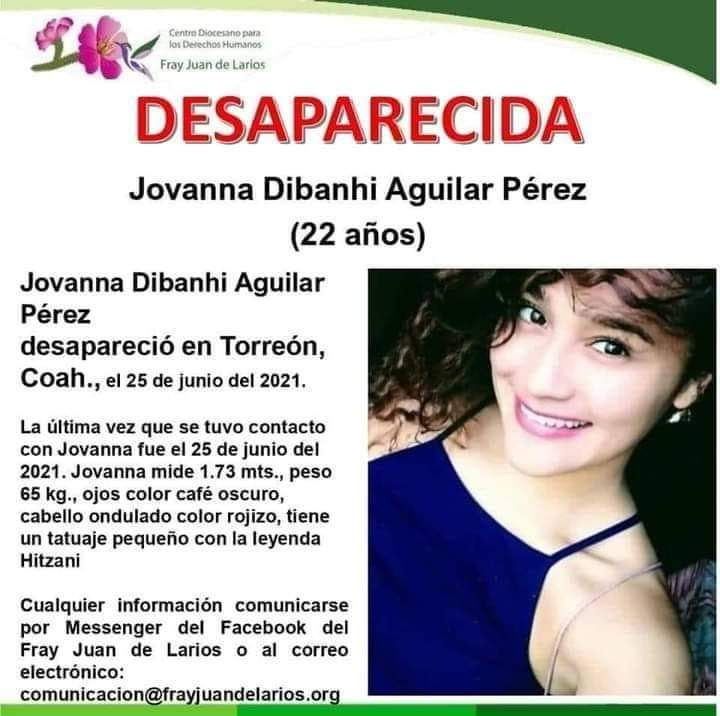 El 25 de junio de 2021 fue el último día que Jovanna Dibanhi Aguilar Pérez tuvo comunicación vía telefónica con sus amistades. A la noche siguiente y en los días posteriores intentaron llamarla, pero no respondió.
